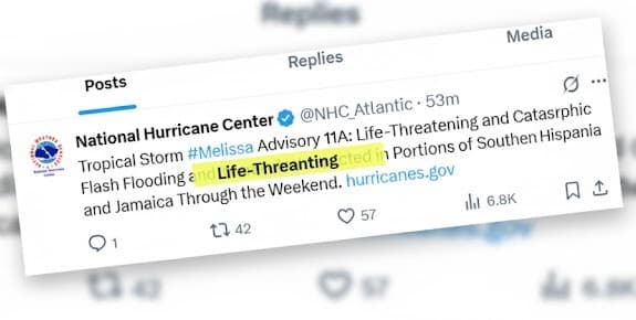 Tropical Storm #Melissa Advisory 11A: Life-Threatening and Catastrophic Flash Flooding and Landslides Expected in Portions of Southern Hispaniola and Jamaica Through the Weekend. https://t.co/tW4KeGdBFb