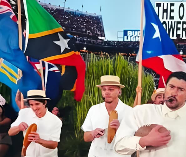 St. Kitts and Nevis’ flag takes center stage during Bad Bunny’s Super Bowl halftime show, celebrating Caribbean and Latin American culture.