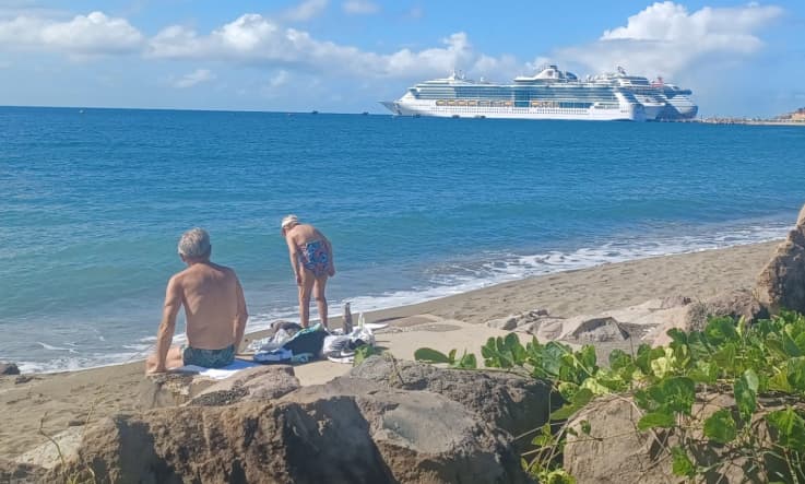 "This is the first time we are basking in the sun on a black sand beach and we are enjoying it," said the female passenger. They were the passengers of 7,6000 cruise passengers who arrived in St Kitts and Nevis.